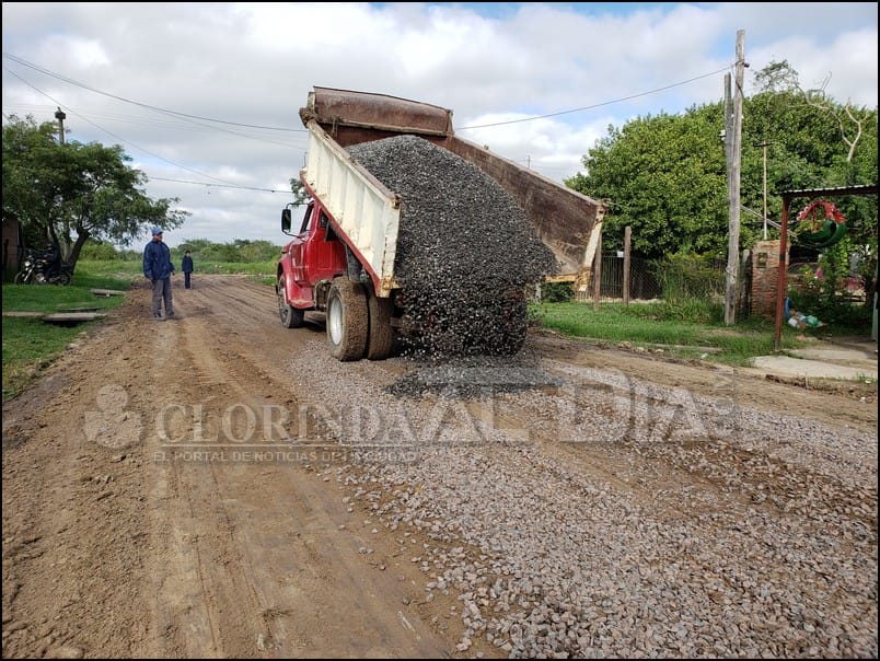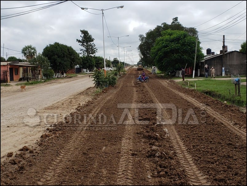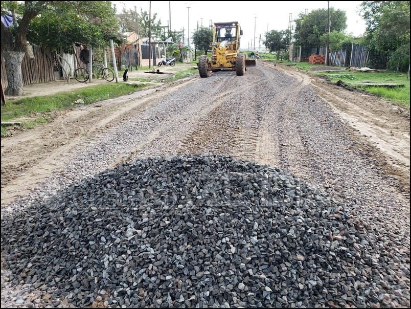 El Director de Obras Publicas Fabián Vázquez nos comentaba que durante varios días no se han podido encarar trabajos de enripiado debido a la cuestión climática, esto obligo a que las maquinas debieran aguardar a que las calles se encuentren mínimamente en condiciones para realizar el trabajo pertinente. Es así que ya se reiniciaron estas tareas en cinco grupos de trabajo bien definidos. Uno de ellos se encuentra en el barrio 29 de Septiembre en los alrededores a la capilla San Roque, allí restaban por completar algunas arterias y la humedad del suelo de un día a otro cambio mucho por lo que se debió realizar nuevamente lo que fue el tratado del suelo que ya se había hecho la jornada anterior.