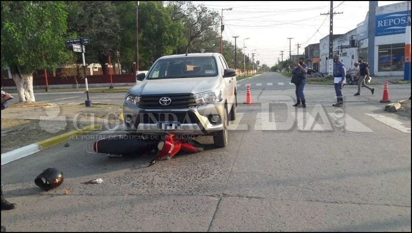 El hecho se registró alrededor de las 08 hs. del jueves en la intersección de avenida San Martín y Hertelendy donde colisionaron una camioneta y una motocicleta, la camioneta, una Toyota Hilux circulaba por calle Hertelendy sentido sur- norte y al llegar a la esquina de la avenida San Martín por motivos que son materias de investigación impacta contra una motocicleta Honda tipo Wave color rojo en la que circulaba una mujer mayor de edad. Como consecuencia de esa colisión la mujer que circulaba en la moto resulto con lesiones en la parte de la cabeza al punto de perder el conocimiento en cierto momento según se puso saber, y ante eso se solicitó presencia del personal de salud del SIPEC que traslado a la misma al hospital local.